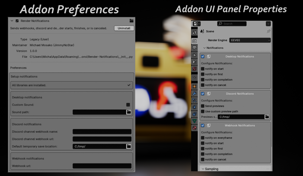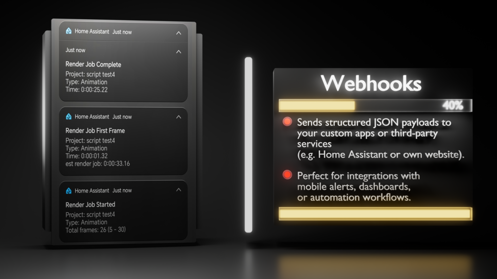 Get updates when your Blender render starts, finishes or is cancelled — right to your desktop, Discord, or even your your custom apps or third-party services that support webhooks (e.g. Home Assistant for mobile notifications).